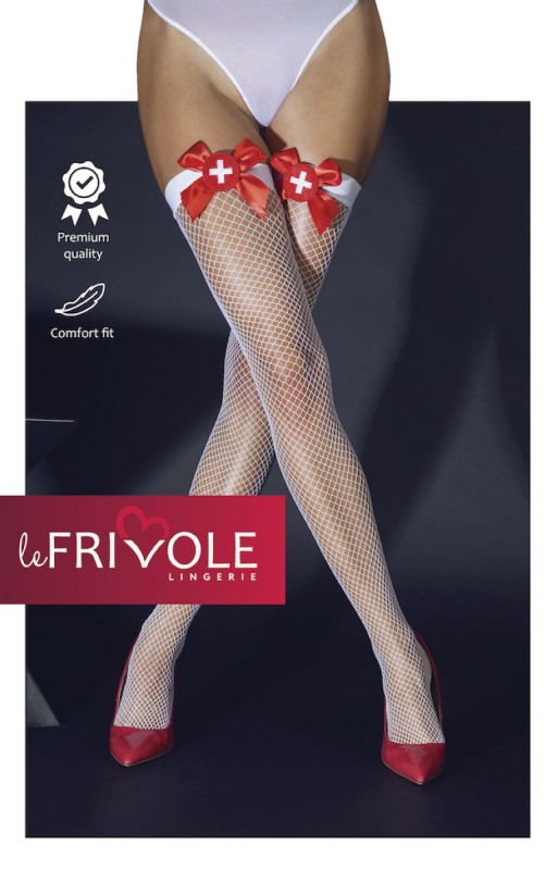 Чулки медсестры "Le Frivole" белая сетка, S/M