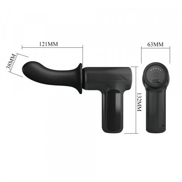 Форма вибратора максимально анатомична и не доставляет дискомфортных ощущений во время использования. Увеличенная головка с особенным загибом предназначена для поиска и массажа G-зоны либо простаты. Выполнен девайс в виде пистолета, который идеально ложится в руке и позволяет использовать игрушку с максимальным комфортом